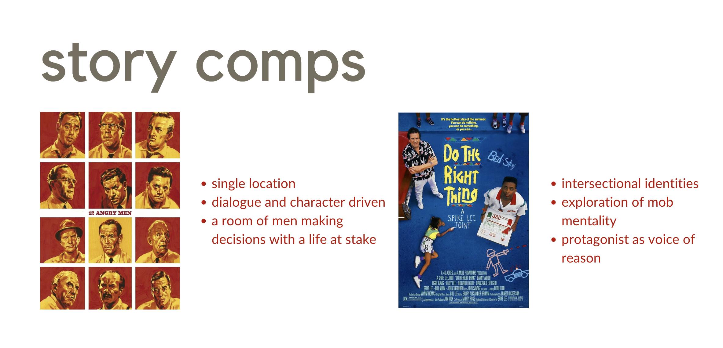 When I moved to the United States I was suddenly aware that I am both woman and Indian. Intersectional identities affect each other and I found that I could explore these through the framework of the question: how do a south asian man and white woman navigate social hierarchies in American society? I was then drawn to explore my inner conflict as a south asian woman in the United States, and understand my vulnerabilities through this film with the hopes of helping someone understand themselves better. 12 Angry Men and Do The Right Thing