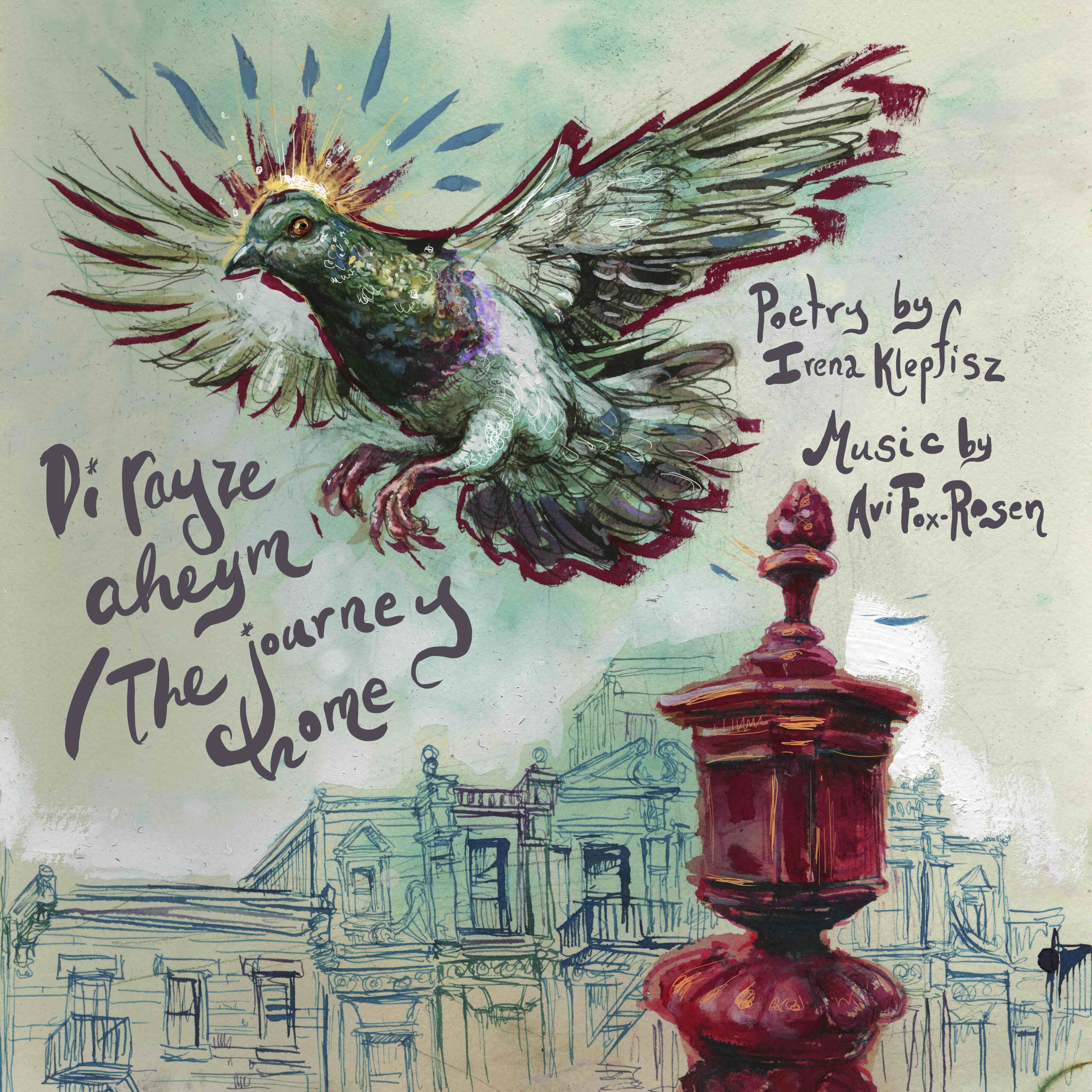 Enjoy the gorgeous album art by Molly Crabapple, and design by Jett George. Pigeon flying in a Brooklyn scene, with the text “Di rayze aheym/The journey home”, poetry by Irena Klepfisz, music by Avi Fox-Rosen. ![]() |