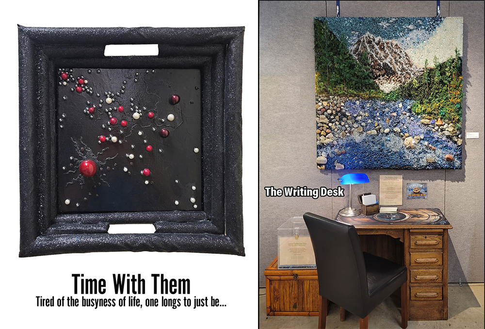 She explored it with her eyes and her heart — beads and balls against a black star field, the constellation of everyone she'd loved in her 90-some years. She didn't know the story that inspired the work. And yet, she recognized the whole of it as her own. That connection — storyteller to artist to viewer, one town to the next — is what your support builds: something meaningful in ways neither the artist nor the contributors could ever predict.