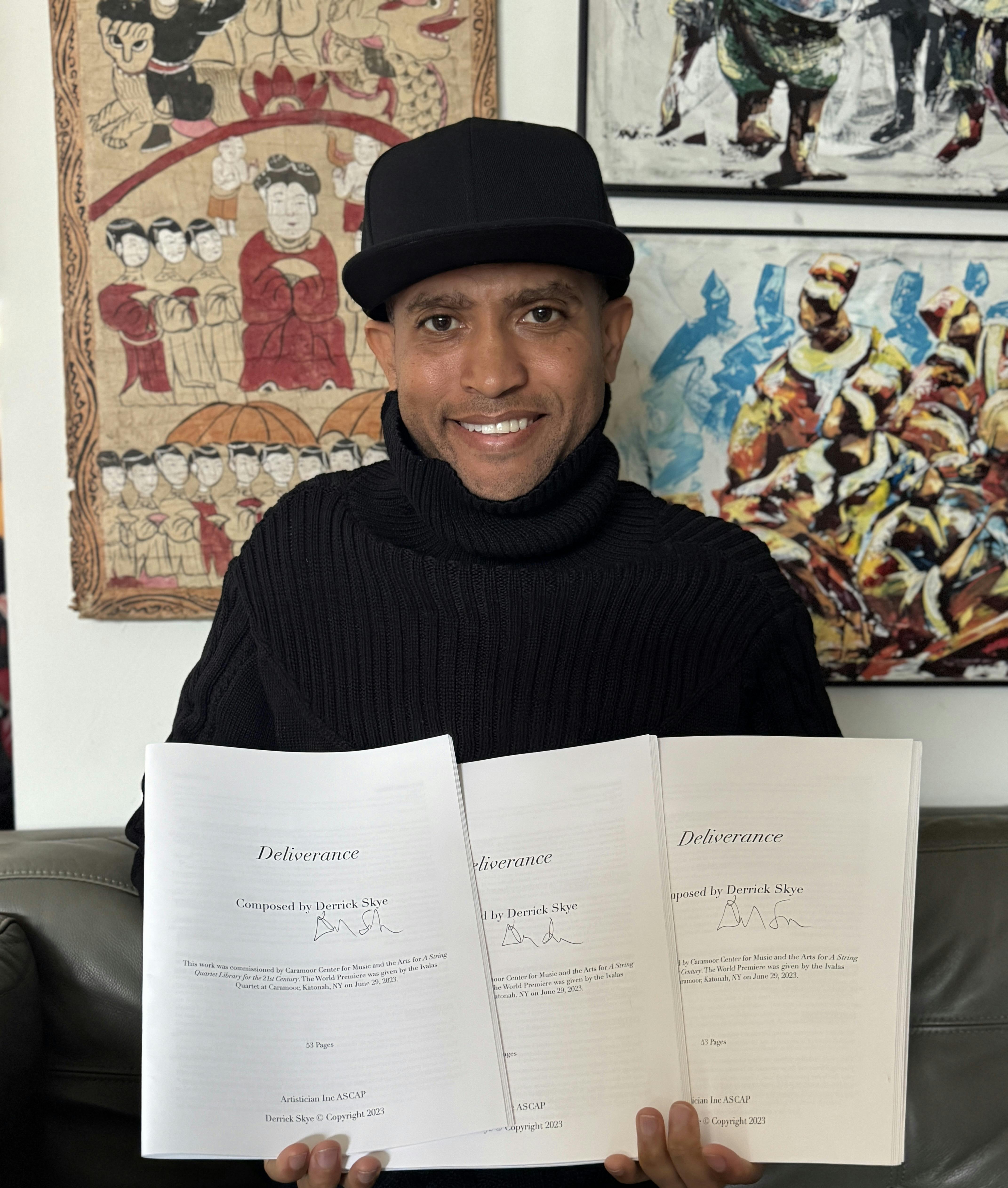 A signed copy of Derrick's new piece for string quartet, Deliverance! (You will also be listed as a So Hot donor and will receive a Derrick Skye magnet!)